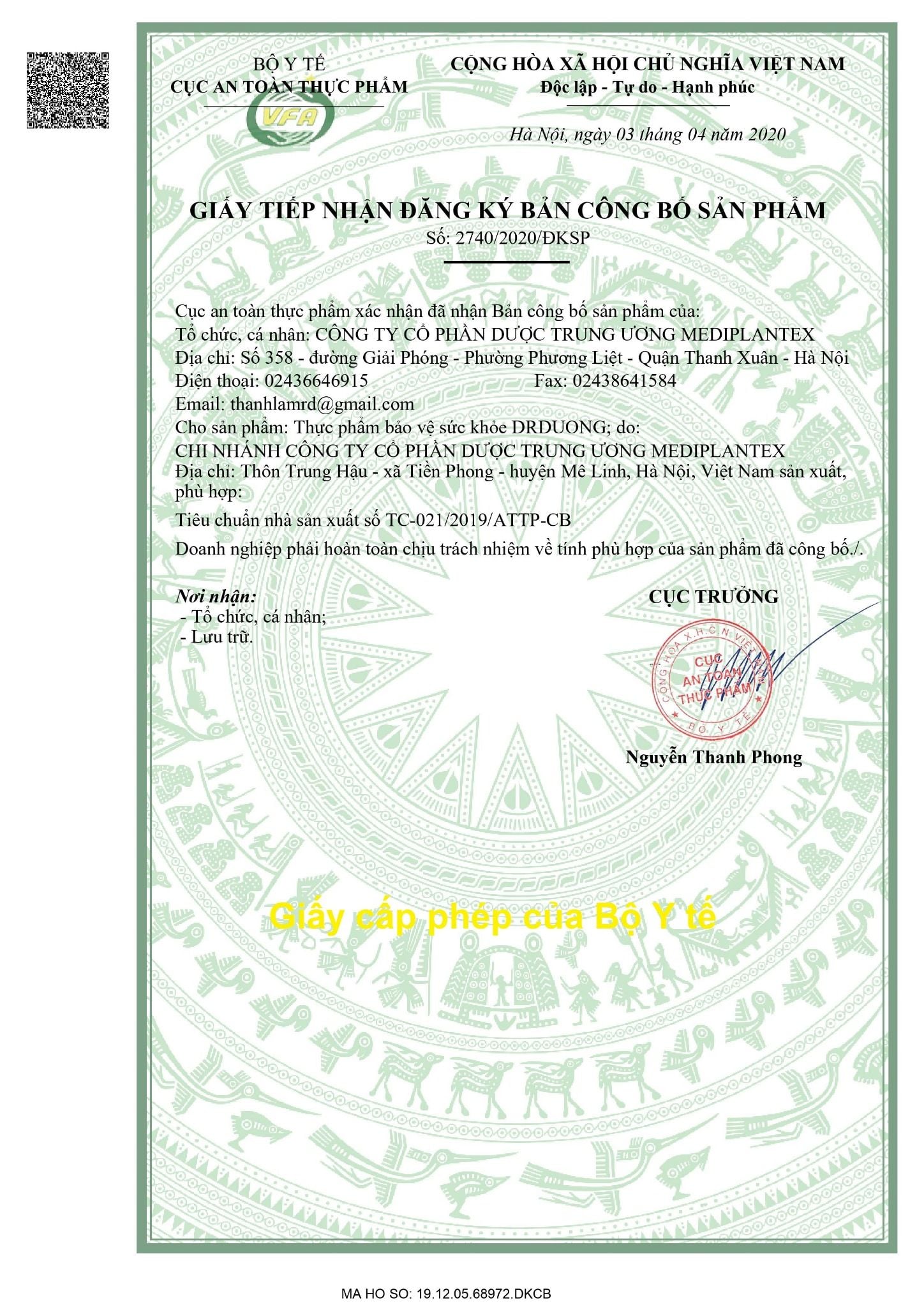 - Nhà sản xuất: Công ty CP Dược TW MEDIPLANTEX.